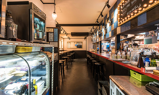 1階はカウンターメインで、バルのような明るい雰囲気の空間。